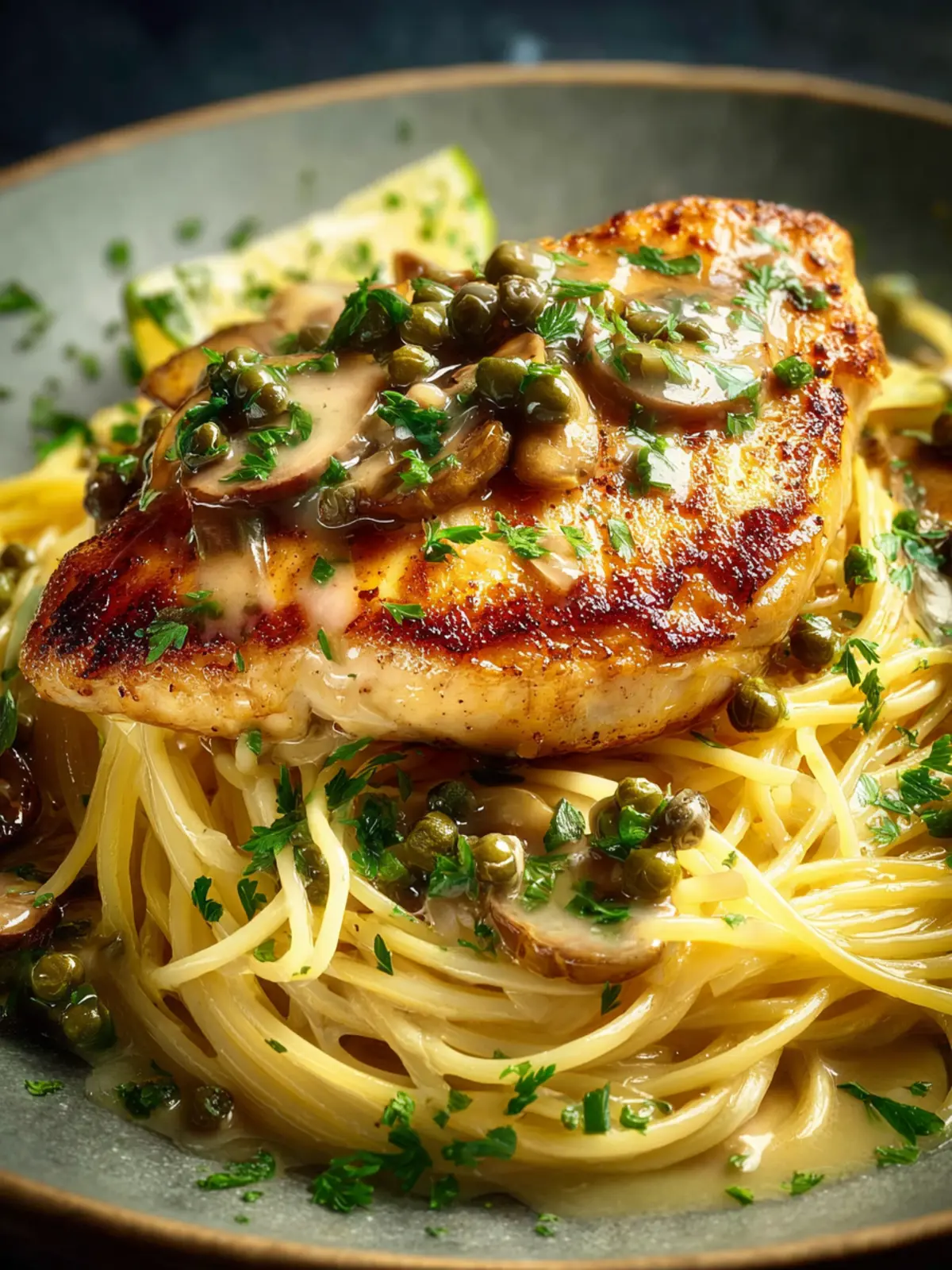 Garnish your dish with freshly chopped parsley. It adds color and a fresh, herbal note that complements the lemony sauce. Plus, a sprinkle of zest from the lemon can brighten the entire dish.