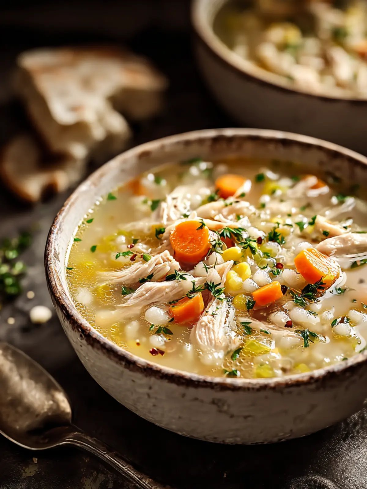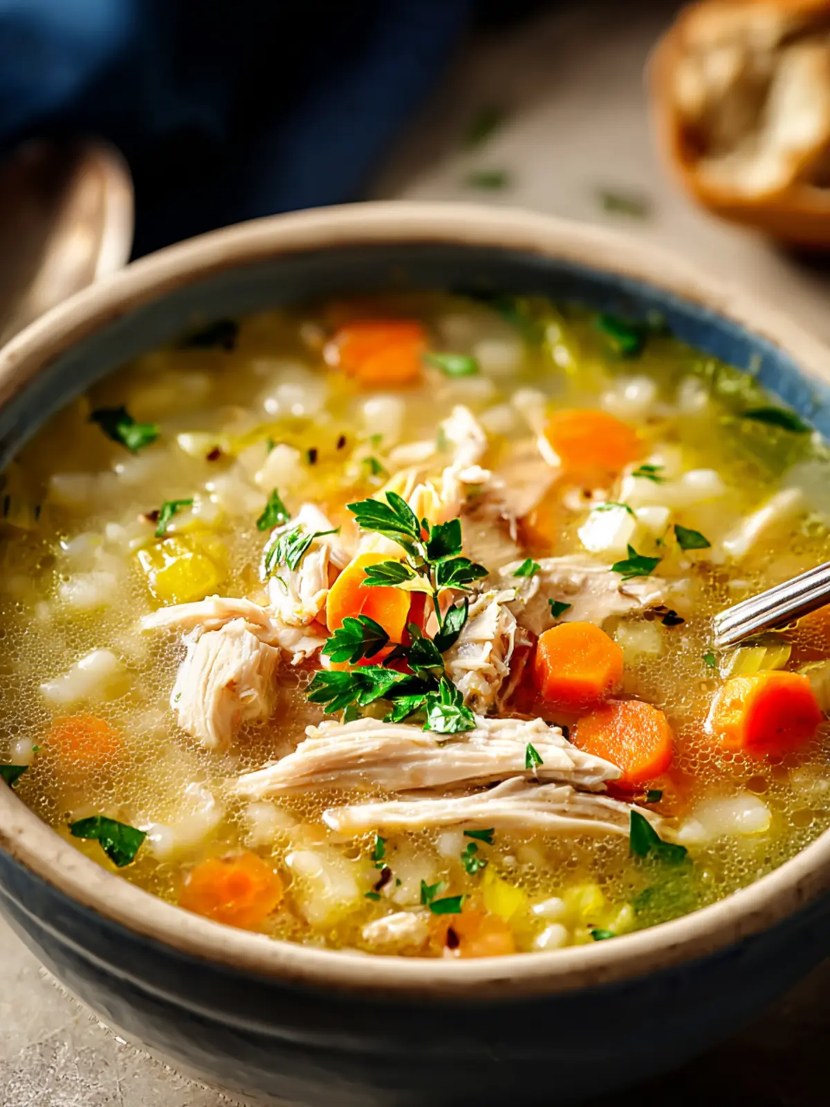 A comforting soup made with leftover turkey and fresh vegetables, perfect for a chilly day.