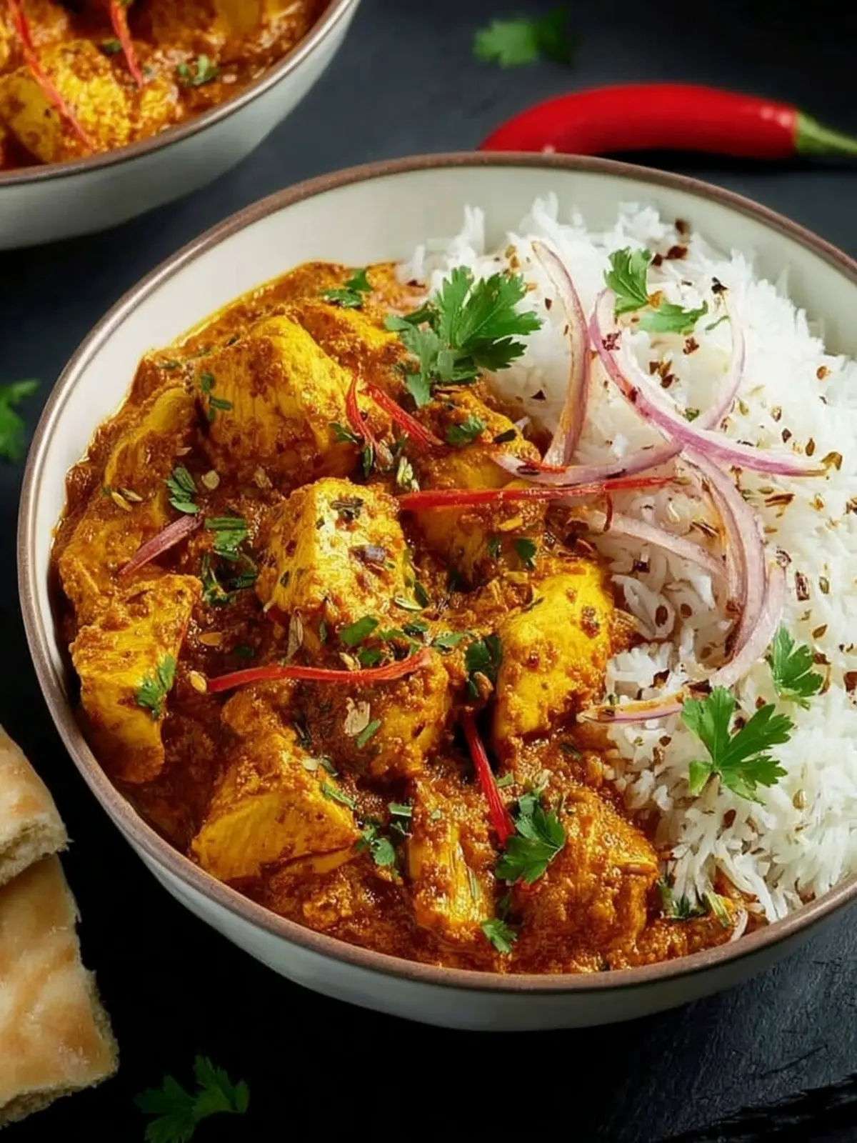 Rice: A classic choice, fragrant basmati or jasmine rice complements the rich spices of your curry beautifully. Try cooking the rice with a bay leaf or a pinch of turmeric for added flavor.