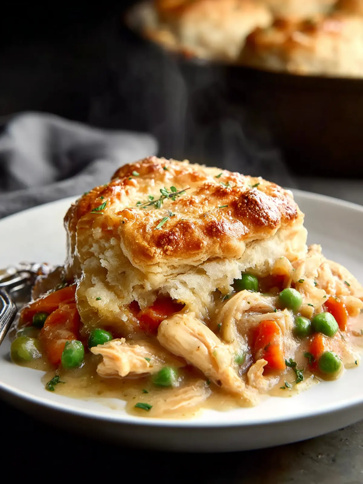 Simplicity: Rather than making a classic pie crust from scratch, this recipe replaces it with a straightforward biscuit topping. No rolling pins required! Just mix, drop, and bake—a perfect solution for a busy weeknight.
