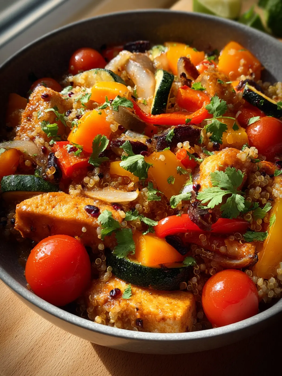 A delicious and healthy quinoa stir-fry packed with vegetables and beans.