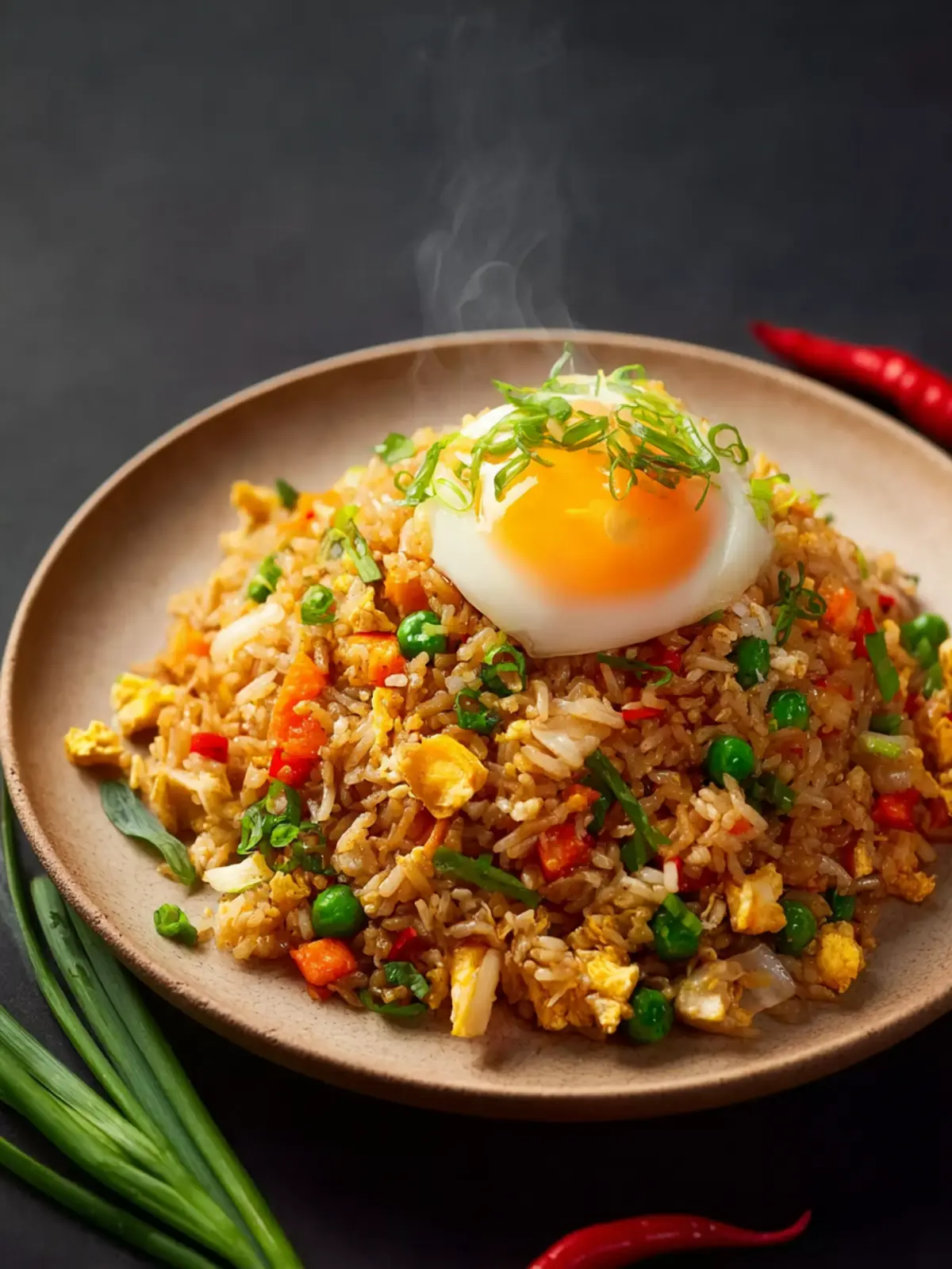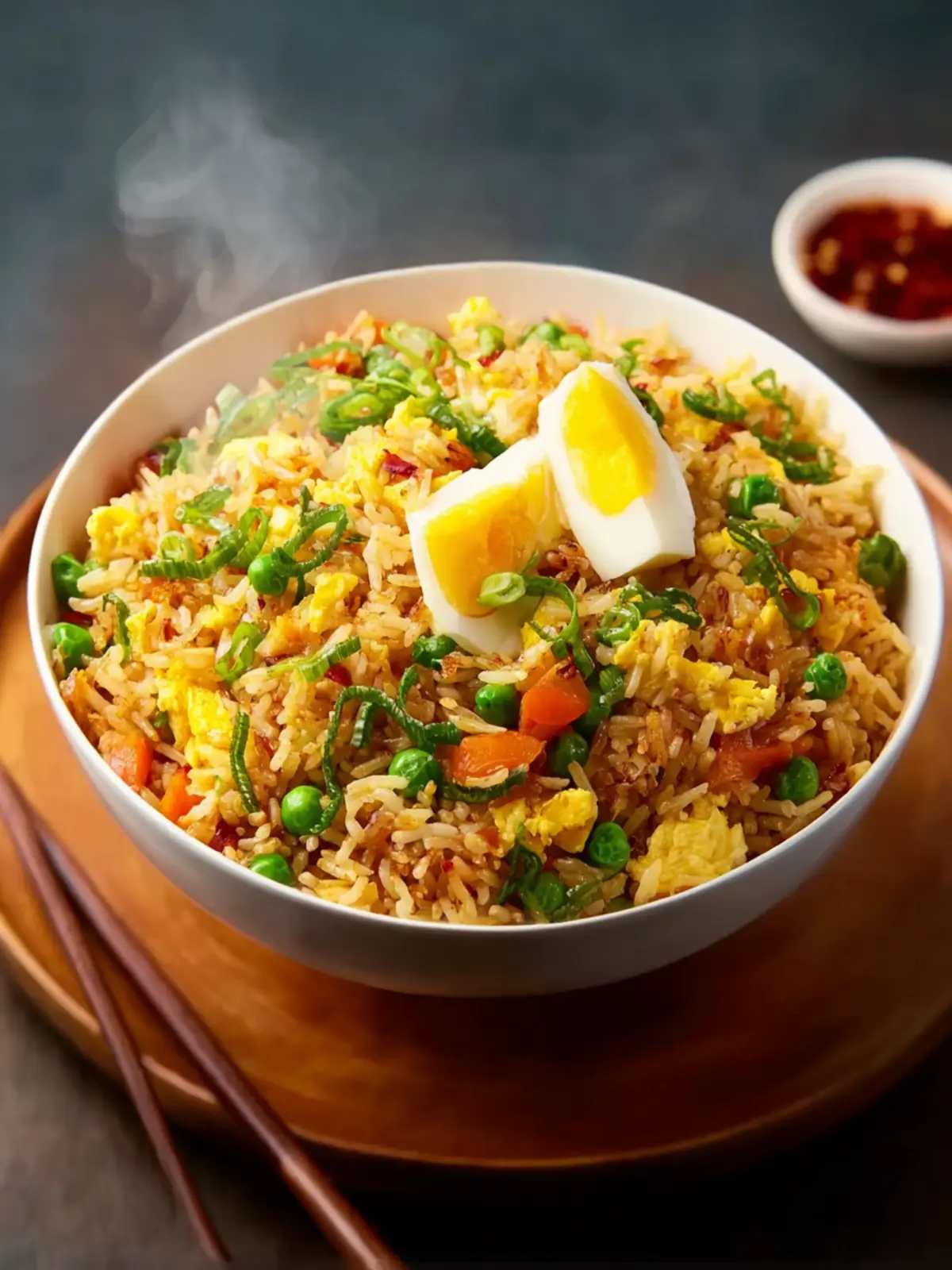 Vegetables: A colorful mix of diced carrots, peas, and green onions adds texture and nutrition. Not only do they brighten the dish, but they also infuse it with fresh flavors.