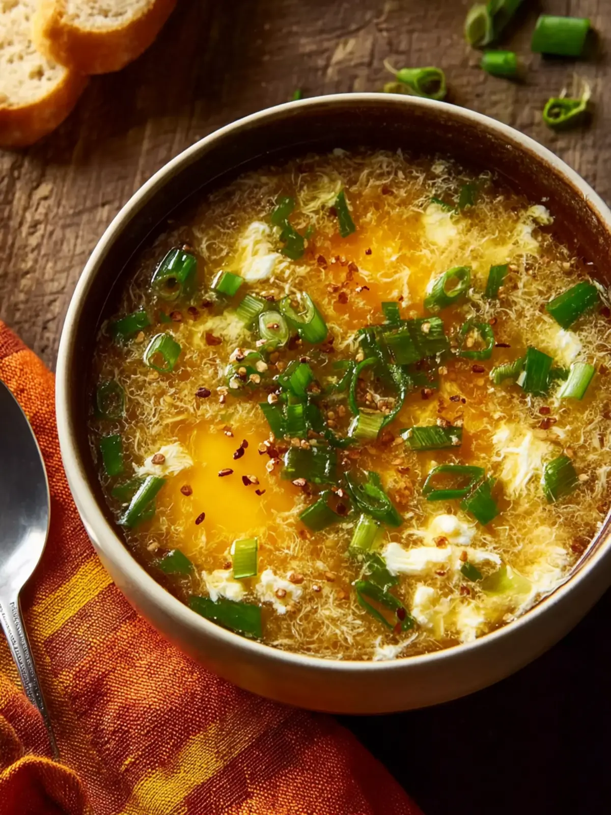 A simple and comforting homemade egg drop soup that shines with its silky texture and savory flavors.
