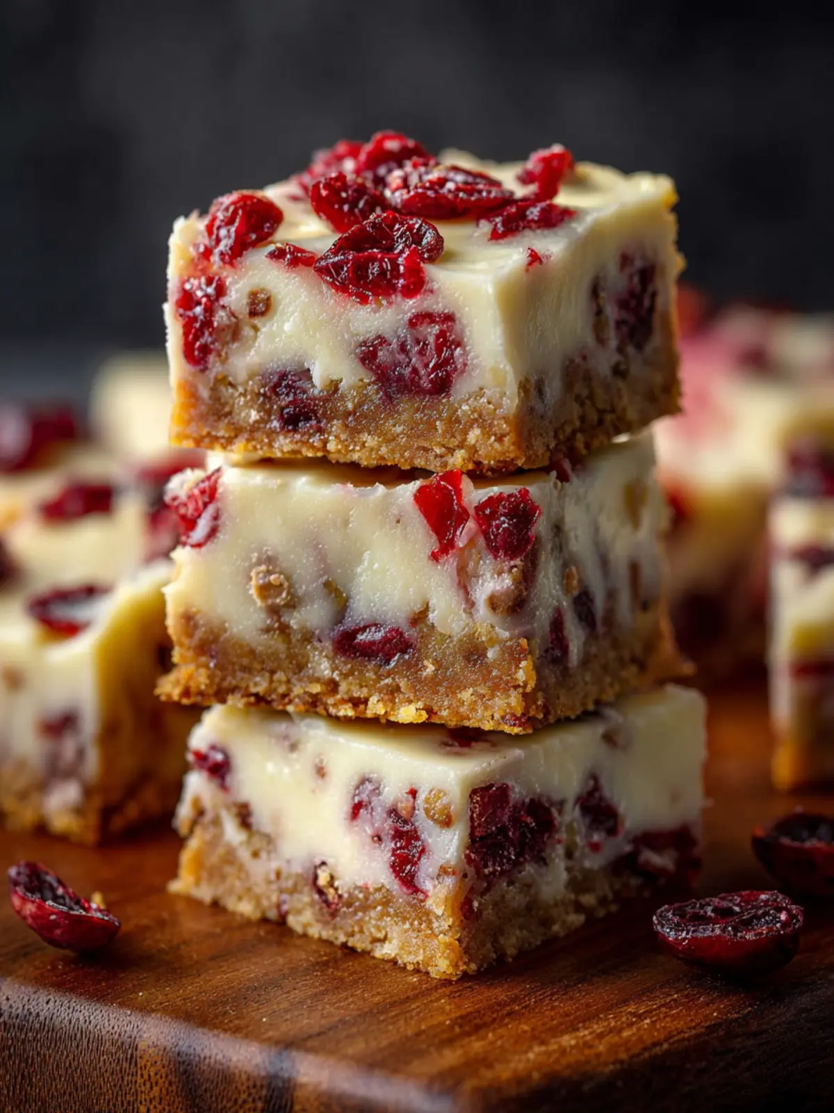 - Spread frosting over the cooled bars, then top with dried cranberries and optional orange zest.