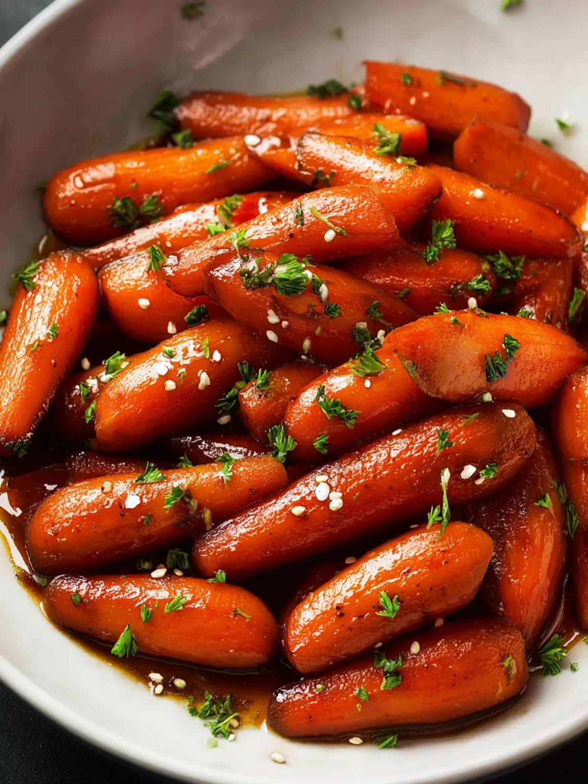Gorgeous Presentation: The rich, shiny glaze coats the carrots, turning them into a dish that looks as good as it tastes. Their vibrant orange hue pops against the dark glaze, making them visually enticing.