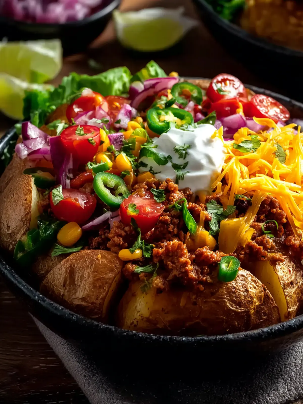Opt for Russet potatoes; their fluffy texture when baked makes them the perfect base for this taco bowl. When choosing potatoes, look for ones that are firm, smooth, and free from blemishes.