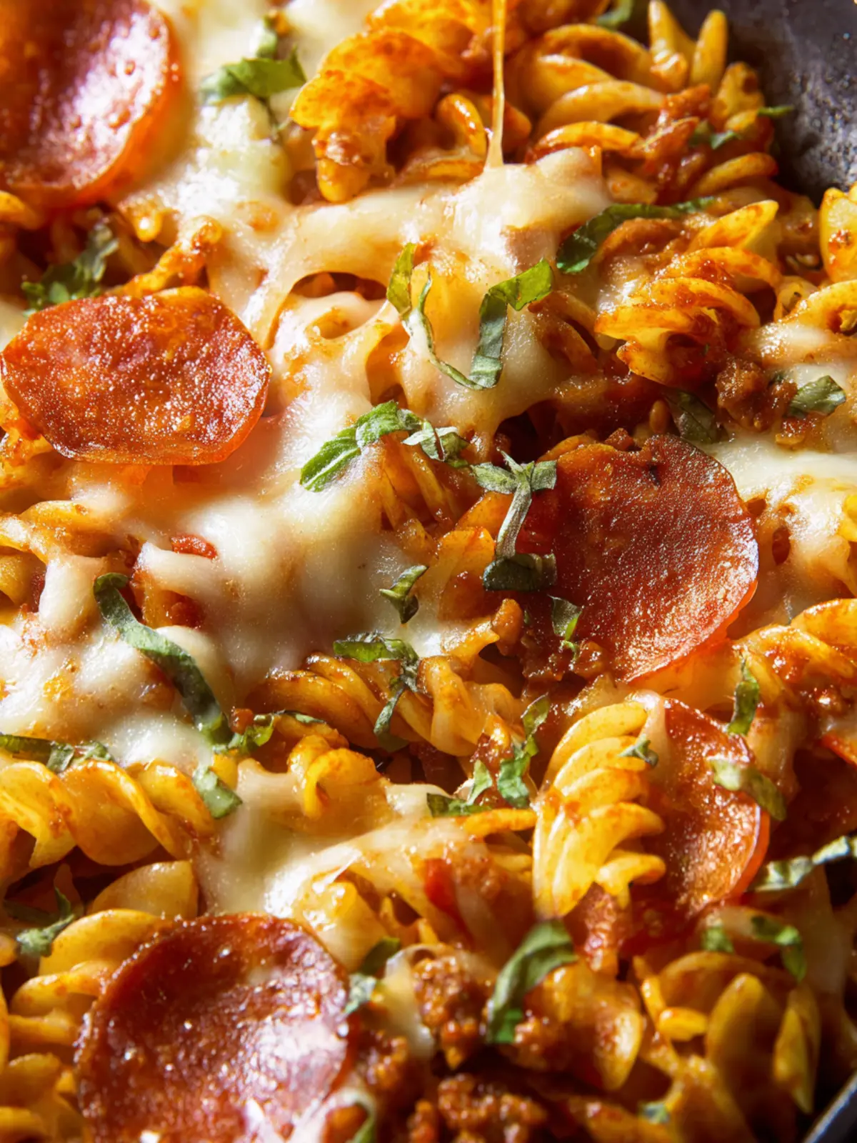 Consider topping your pizza pasta with a sprinkle of fresh basil or a handful of arugula right before serving. The vibrant greens add a peppery flavor that contrasts beautifully with the rich, cheesy pasta.