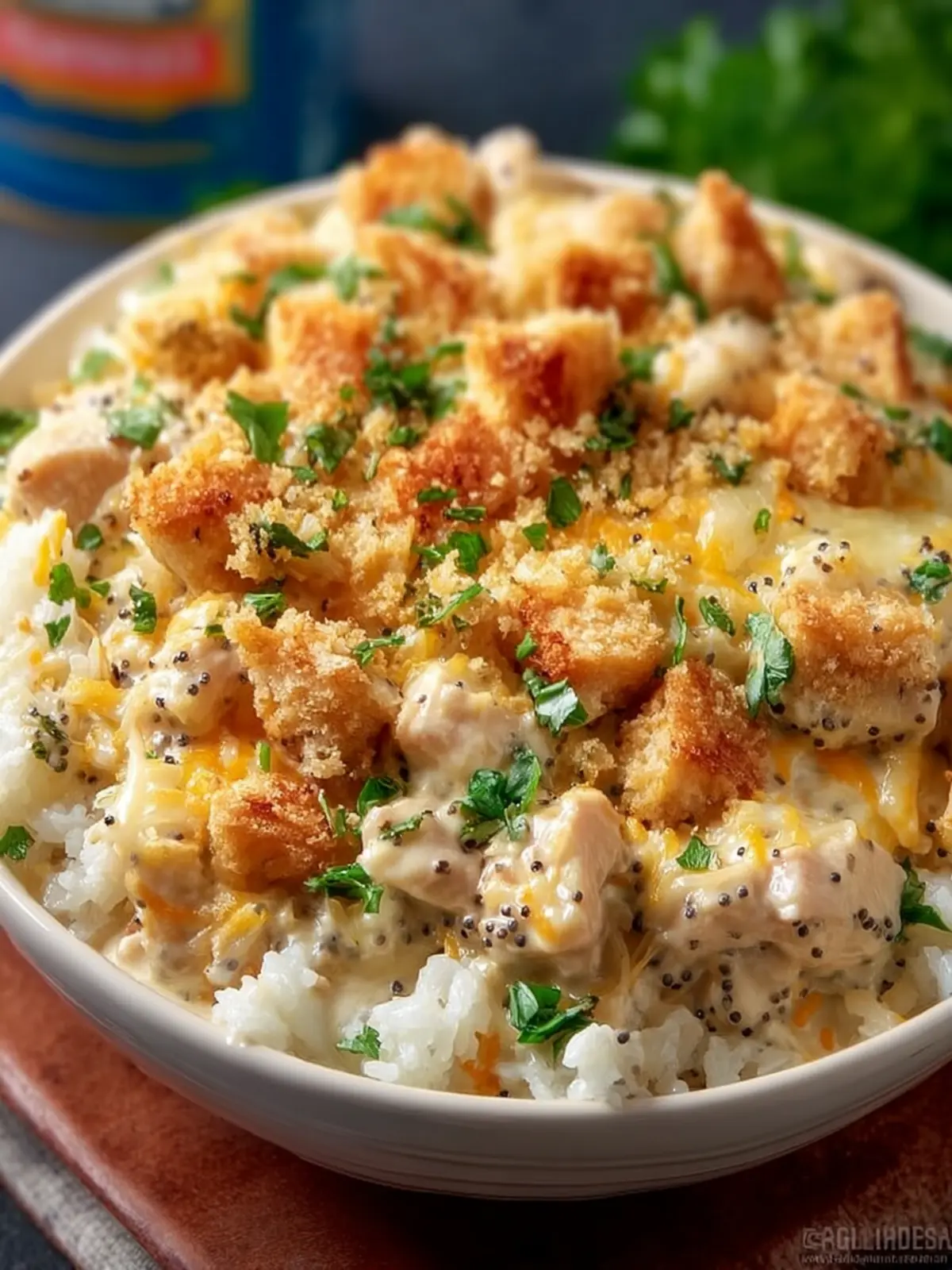 A comforting and delicious creamy chicken casserole, perfect for a family dinner.