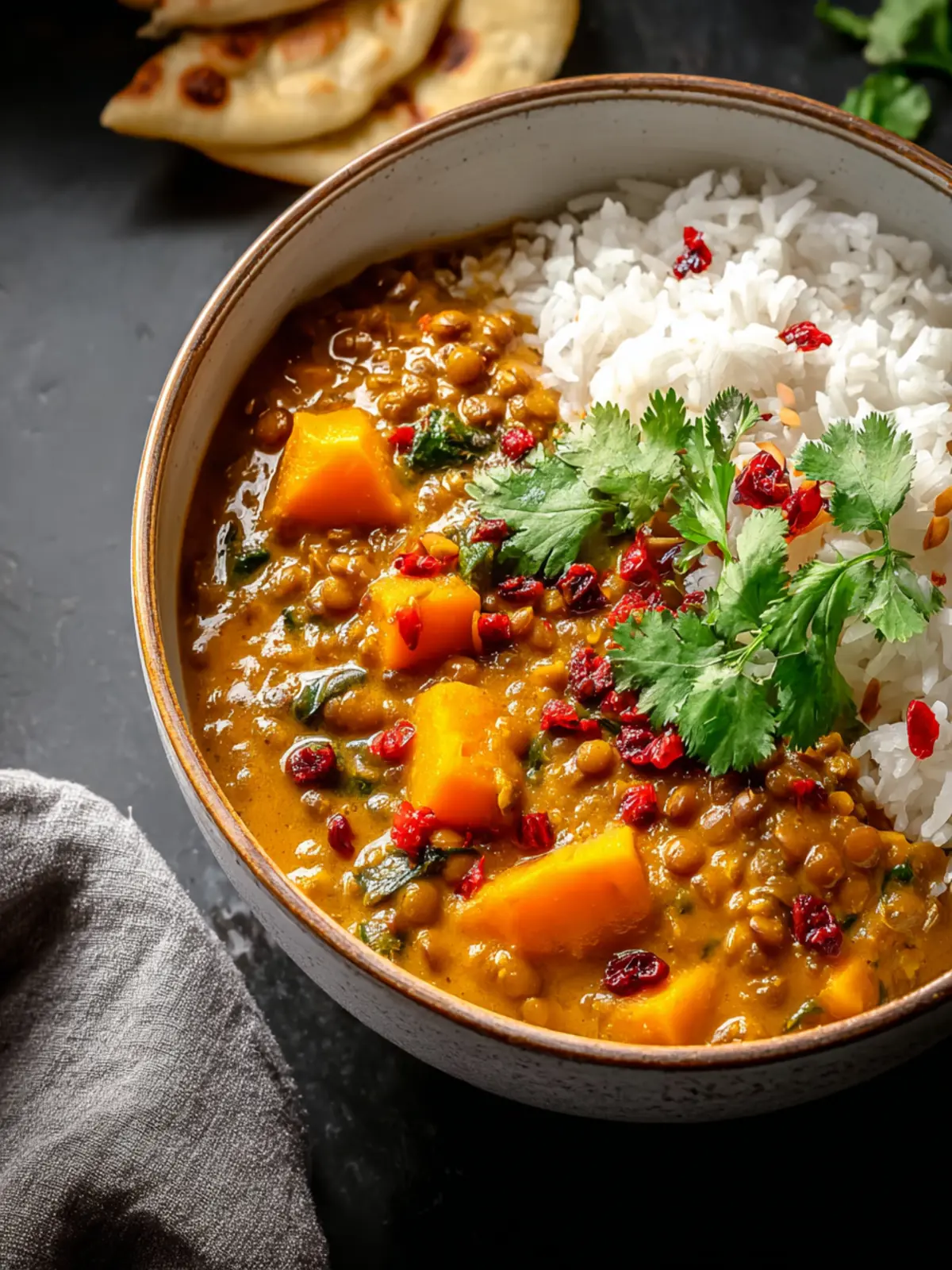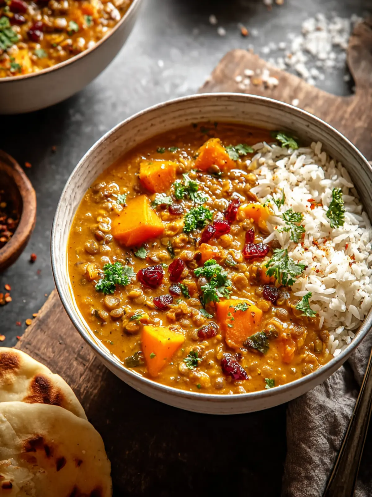 There are so many delicious options to complement your savory lentil pumpkin curry! Consider serving it with: